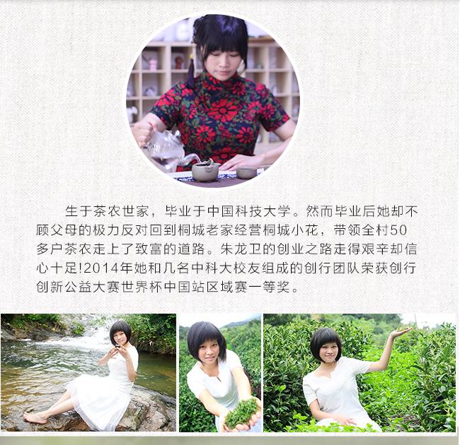 大學畢業,回歸家鄉,種茶、做茶、賣茶,在別人眼里是一件挺瘋狂的事。有了創業的想法,和一群志同道合的校友組成了創行團隊,一起去踐行自己的目標,極力克服家里人的反對,也不怕前路的諸多困難。況且家鄉有這樣好的資源,茶山幾百畝,世世代代的茶農,品質上佳的茶葉,也更有信心去面對創業路上所有的困難。雖然小花茶沒有顯赫的名氣,銷量也不是那么的好,但是大家一起努力也定能改變現狀。這次眾籌項目的發起人朱龍衛初衷很簡單,信念也很堅定:讓家鄉的小花茶得到大家的關注,讓傳統的手工藝得以繼承和發揚。如今的互聯網電子商務具有強大的推動力,讓特色產品進入互聯網市場,減少中間環節,不僅可以幫助農產品打破有形市場的局限,進一步拓展,同時還能積極發展農村旅游,實現電商精準扶貧。